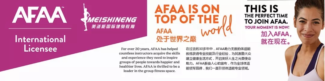 AFAA作为全球健身教育行业的领导者,具备领先全球的专业课程,并构成完整丰富的课程体系,为健身人才培养完成职业规划。AFAA具备全球30多年的运营经验,其运营与教育体系是经过80余国家35万专业教练实践检验认可之体系。AFAA在中国运营10余年,影响和推动行业发展,培养出一批业界领军人物。2016年更与NASM携手,构建全球健身教育的第一大机构。