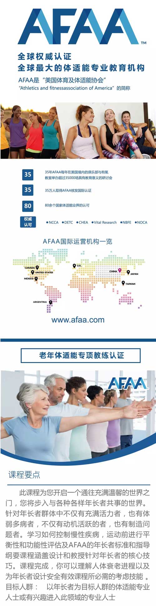 对于团操教练亦或是私人教练,对于任何年龄段人群客户增加,都是其事业增长之机会。但是训练此年龄段客户需要特殊知识,提供特别照顾,以及修正动作,安全考虑。因为年长者比一般成年人有更多健康的问题。