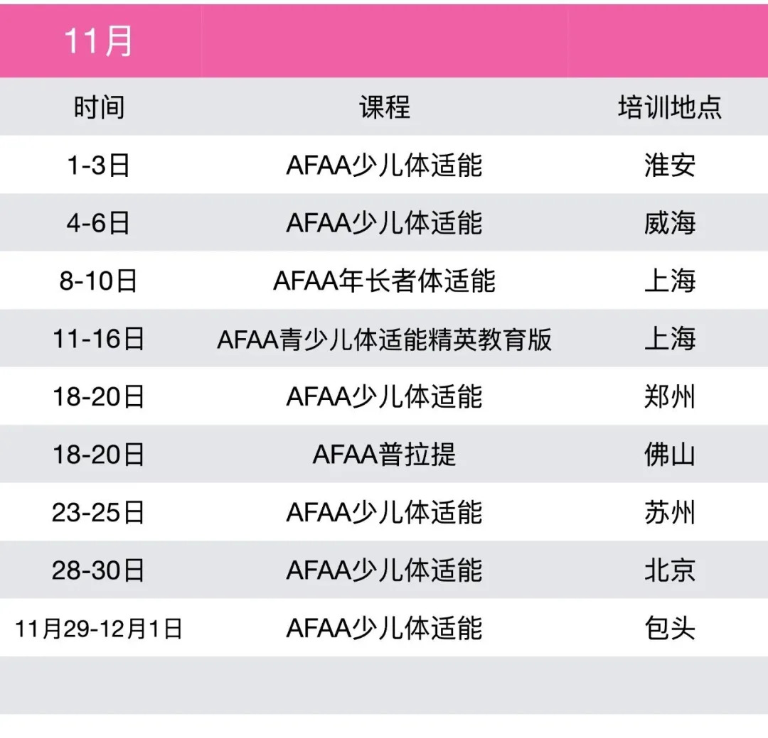 下一篇:美适能AFAA11-12月课程一览(课程...